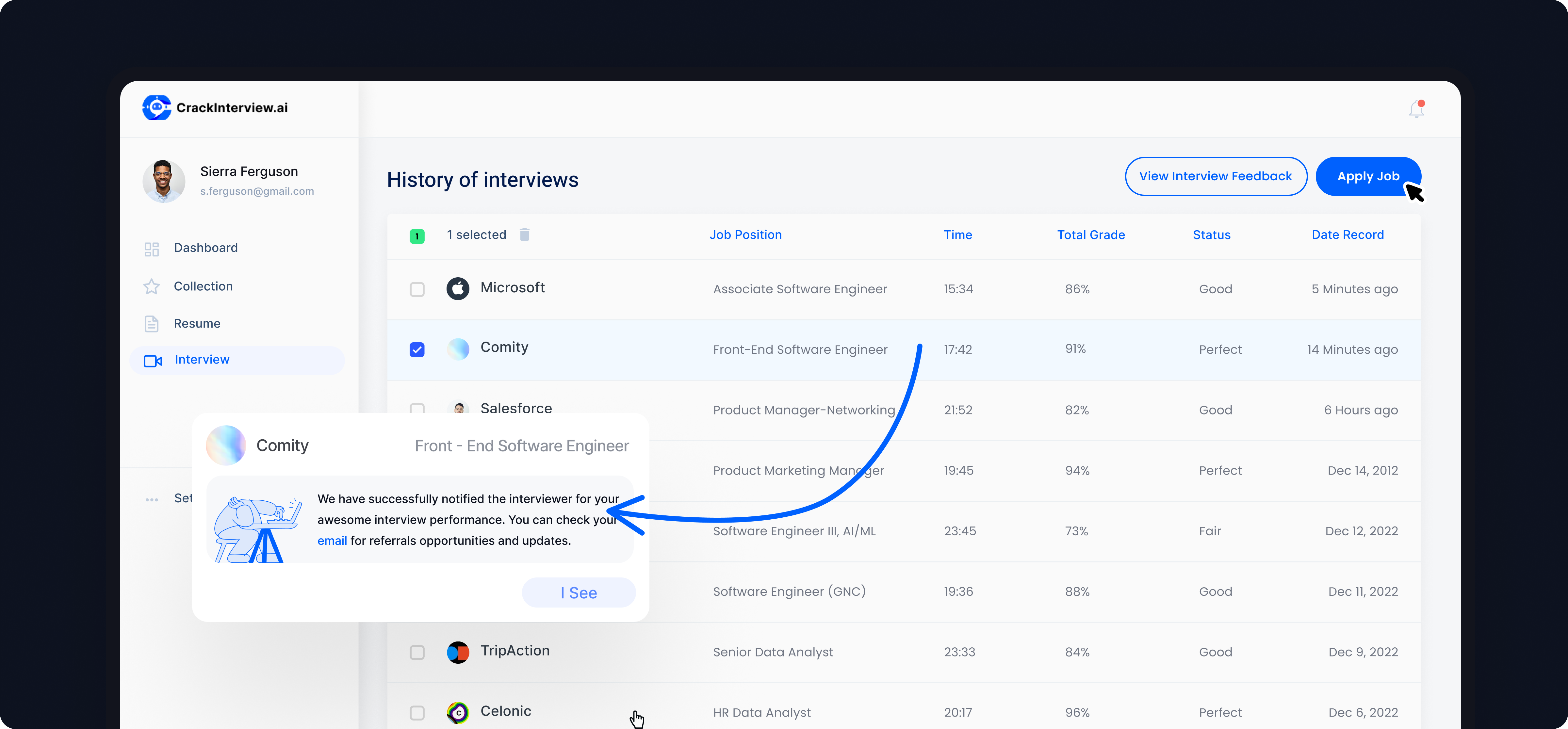 Perform exceptionally well in your mock interviews, and we will help you get direct job referrals